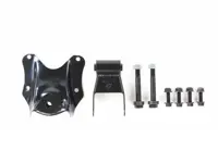Leaf spring hanger kit for Ford E-150, F-100 and F-150 with 2.5 inch wide spring. Fits rear of rear leaf spring applications, and includes M955 leaf spring hanger and M1724 leaf spring shackle.