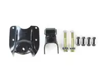 Leaf spring hanger kit for Ford F-250 and F-350 trucks with 2.25 inch wide springs. Fits rear of rear spring applications, and includes M963 leaf spring hanger and M1730 leaf spring shackle.