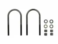 Round U-Bolt Kit with 2 Grade 8 U-Bolts that are 3/4 inches in diameter, 5 inches wide and 15 inches long. Kits includes 2 U-bolts, nuts and washers. Order one U-bolt kit for each leaf spring.