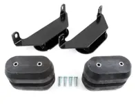 Hollow Timbren rubber springs are mounted between the truck frame and the axle. They do not take the place of the existing leaf spring, but work in conjunction with it, acting as a bump stop, to improve the ride of your truck and to protect springs against overloading.
