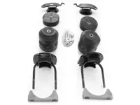 Hollow Timbren rubber springs are mounted between the truck frame and the axle. They do not take the place of the existing leaf spring, but work in conjunction with it, acting as a bump stop, to improve the ride of your truck and to protect springs against overloading.