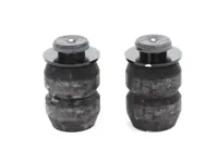 Hollow Timbren rubber springs are mounted between the truck frame and the axle. They do not take the place of the existing leaf spring, but work in conjunction with it, acting as a bump stop, to improve the ride of your truck and to protect springs against overloading.