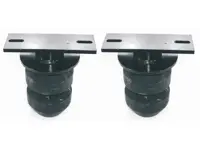 Hollow Timbren rubber springs are mounted between the truck frame and the axle. They do not take the place of the existing leaf spring, but work in conjunction with it, acting as a bump stop, to improve the ride of your truck and to protect springs against overloading.