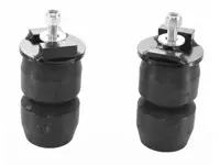 Hollow Timbren rubber springs are mounted between the truck frame and the axle. They do not take the place of the existing leaf spring, but work in conjunction with it, acting as a bump stop, to improve the ride of your truck and to protect springs against overloading.