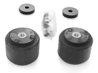 Hollow Timbren rubber springs are mounted between the truck frame and the axle. They do not take the place of the existing leaf spring, but work in conjunction with it, acting as a bump stop, to improve the ride of your truck and to protect springs against overloading.