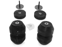 Hollow Timbren rubber springs are mounted between the truck frame and the axle. They do not take the place of the existing leaf spring, but work in conjunction with it, acting as a bump stop, to improve the ride of your truck and to protect springs against overloading.