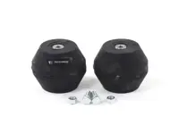 Hollow Timbren rubber springs are mounted between the truck frame and the axle. They do not take the place of the existing leaf spring, but work in conjunction with it, acting as a bump stop, to improve the ride of your truck and to protect springs against overloading.