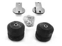 Hollow Timbren rubber springs are mounted between the truck frame and the axle. They do not take the place of the existing leaf spring, but work in conjunction with it, acting as a bump stop, to improve the ride of your truck and to protect springs against overloading.