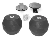 Hollow Timbren rubber springs are mounted between the truck frame and the axle. They do not take the place of the existing leaf spring, but work in conjunction with it, acting as a bump stop, to improve the ride of your truck and to protect springs against overloading.